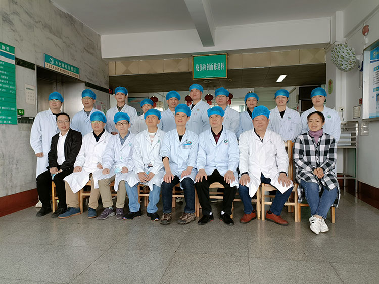 2021年4月10日,來自梅州市人民醫(yī)院、豐順縣人民醫(yī)院、汕頭澄海人民醫(yī)院、普寧市第二人民醫(yī)院、興寧市人民醫(yī)院、惠來縣人民醫(yī)院,惠來縣第二人民醫(yī)院、廣州市開發(fā)區(qū)醫(yī)院、陽西總醫(yī)院中醫(yī)醫(yī)院等相關(guān)專業(yè)的科主任、骨干醫(yī)師齊聚韶關(guān)市第一人民醫(yī)院燒傷和創(chuàng)面修復(fù)科參觀交流,通過臨床觀摩和病例分享,有利于推動(dòng)再生醫(yī)療技術(shù)在糖尿病足潰瘍、壓瘡等慢性難愈性創(chuàng)面的臨床規(guī)范化應(yīng)用,造福更多患者。