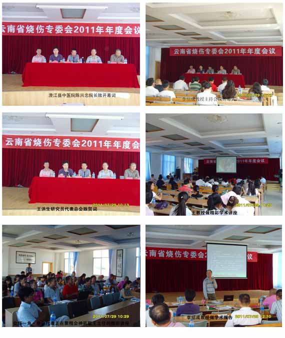 2011年7月29日~31日,由云南省中西醫(yī)結(jié)合學(xué)會第二屆燒傷專業(yè)委員會主辦,澄江縣中醫(yī)院協(xié)辦的2011年云南省中西醫(yī)結(jié)合學(xué)會第二屆燒傷專業(yè)委員會第三次學(xué)術(shù)年會暨2011年云南省繼續(xù)醫(yī)學(xué)教育項目“中西醫(yī)結(jié)合皮膚原位再生技術(shù)治療慢性難治性潰瘍創(chuàng)面”學(xué)術(shù)會議在美麗的高原湖濱澄江縣隆重舉行。本次會議本著“理論提高、注重實踐、交流經(jīng)驗、共同發(fā)展”為宗旨,通過演講、專題講座、大會交流等形式總結(jié)再生醫(yī)療技術(shù)在各類慢性難治性創(chuàng)傷、潰瘍創(chuàng)面處理的要點與規(guī)范化應(yīng)用該項技術(shù)的臨床經(jīng)驗,進(jìn)一步提高我省中西醫(yī)結(jié)合治療難愈性創(chuàng)瘍創(chuàng)面的學(xué)術(shù)、理論研究及臨床救治水平以及提高慢性難治性創(chuàng)面的治療水平,本次會議特別邀請了中國燒傷創(chuàng)瘍雜志社副總編輯、中國中西醫(yī)結(jié)合學(xué)會燒傷專業(yè)委員會常委兼秘書、北京美寶燒傷創(chuàng)瘍研究所副所長、臨床研究部主任王洪生研究員等國內(nèi)省內(nèi)相關(guān)專業(yè)的專家進(jìn)行專題學(xué)術(shù)講座。
