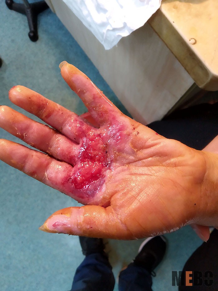 5月8日,再生醫(yī)學知名專家、《中國燒傷創(chuàng)瘍雜志社》常務編委趙瑞慶主任    來到江蘇常熟市莫城衛(wèi)生院,檢視左手熱壓傷女工,指導醫(yī)生規(guī)范換藥?;颊呒凹覍偃f分感激趙教授和治療醫(yī)生丁主任。丁主任表示,他又學到了新的換藥操作技法,未來將一如既往地堅持再生技術的應用。