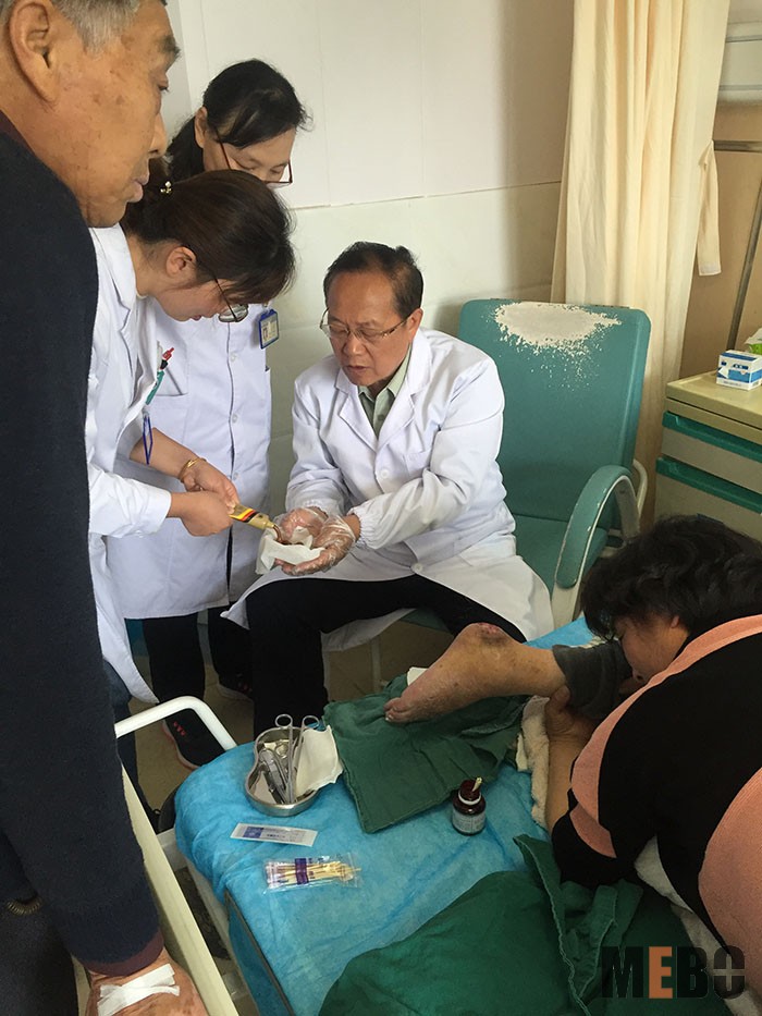 5月9日,再生醫(yī)學知名專家、《中國燒傷創(chuàng)瘍雜志社》常務編委趙瑞慶主任來到亭湖區(qū)人民醫(yī)院對內分泌科褥瘡患者進行會診,示范規(guī)范換藥流程,并指導醫(yī)生用再生醫(yī)療技術治療,受到醫(yī)生的一致好評。