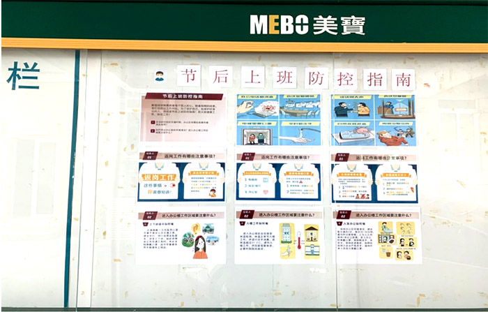 復(fù)工前,為全力做好新型冠狀病毒肺炎預(yù)防、控制工作,遏制疫情擴(kuò)散,確保全體員工的身體健康和生命安全,汕頭市美寶提前做好了各項(xiàng)疫情防護(hù)宣傳工作,疫情防控科普知識(shí)的宣傳板及樓內(nèi)各區(qū)域警示宣傳隨處可見(jiàn);并提前購(gòu)買(mǎi)洗手消毒液、配置75%酒精和次氯酸鈉溶液地面消費(fèi)水、體溫槍、消毒碗柜和一次性醫(yī)用手套等防護(hù)等物資;門(mén)口安保也嚴(yán)陣以待,員工統(tǒng)一佩戴口罩,入廠時(shí)逐個(gè)接受體溫檢測(cè)和噴手消毒。