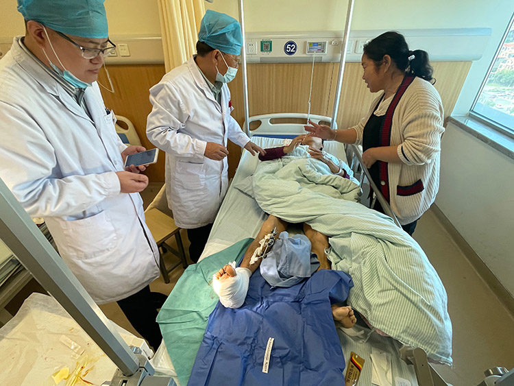10月22日,應(yīng)鳳凰縣民族中醫(yī)院陳彥均醫(yī)生的邀請(qǐng),《中國(guó)燒傷創(chuàng)瘍雜志》編委、燒傷創(chuàng)瘍?cè)偕t(yī)療技術(shù)臨床專家金黨軍,到醫(yī)院會(huì)診一例壞死性筋膜炎患者并做了學(xué)術(shù)交流,金教授詳細(xì)講解了再生醫(yī)療技術(shù)清創(chuàng)原則和規(guī)范作用,并贊揚(yáng)了陳醫(yī)生不辭辛苦積極在基層應(yīng)用和宣傳再生醫(yī)療技術(shù)造福湘西百姓的精神,得到了在場(chǎng)醫(yī)護(hù)人員和患者的一致認(rèn)可。