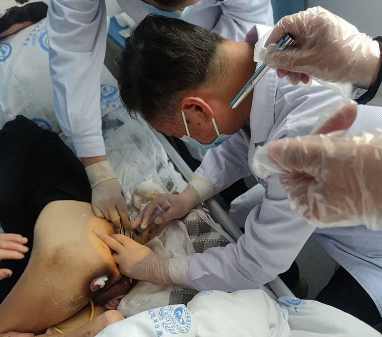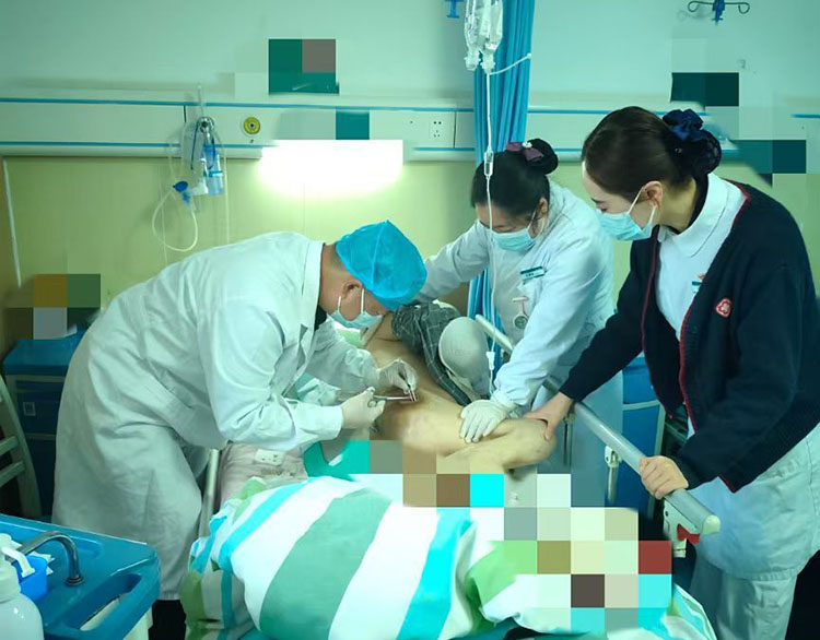 2025年3月10日,《中國燒傷創(chuàng)瘍雜志》編委、燒傷創(chuàng)瘍再生醫(yī)療技術(shù)臨床專家張強,到訪湖北宜昌國藥葛洲壩中心醫(yī)院老年醫(yī)學(xué)科一病區(qū),同陳寒漪護士長,趙夢蝶護士等會診一例全身多發(fā)性壓力性損傷創(chuàng)面老年患者。張主任示范創(chuàng)面清理方式并行再生技術(shù)規(guī)范換藥。會診結(jié)束大家共同討論了營養(yǎng)供給及后期換藥方案。