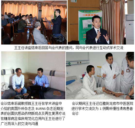 中國中西醫(yī)結合學會燒傷專業(yè)委員會常委兼秘書、《中國燒傷創(chuàng)瘍雜志》副總編輯、北京美寶燒傷創(chuàng)瘍研究所副所長、臨床研究部主任王洪生研究員應邀首先以“燒傷皮膚原位再生復原技術在特重度燒傷創(chuàng)面及系統(tǒng)治療要點”為題進行了專題講座,講座結束后王主任還與與會代表進行了互動式交流,一一回答代表的提問;接下來上海中醫(yī)藥大學附屬龍華醫(yī)院中醫(yī)外科主任闕華發(fā)教授以“糖尿病性足潰瘍的中醫(yī)治療”為題進行了學術交流;隨后龍巖市中醫(yī)院副院長蔣涼涼、龍巖市中醫(yī)院皮膚科主任黃鴻健、福建省人民醫(yī)院中西醫(yī)結合外科主任秘書王世軍依次進行了大會學術交流。