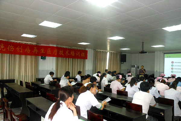 下午15:30會(huì)議在衛(wèi)生院五樓會(huì)議室準(zhǔn)時(shí)召開,會(huì)議到場人數(shù)四十余人,會(huì)議由醫(yī)務(wù)科王科長主持。金教授首先闡述了徐榮祥教授創(chuàng)立發(fā)明的人體再生復(fù)原科學(xué)、基礎(chǔ)理論與臨床技術(shù)規(guī)范;介紹了皮膚組織原位再生的機(jī)制,通過大量的病例資料展示了燒傷創(chuàng)瘍?cè)偕t(yī)學(xué)與療法在燒傷整形科、普外科、骨科、內(nèi)分泌科(糖尿病足)、肛腸科、婦科等臨床多科室的治療效果和規(guī)范治療方法,燒傷創(chuàng)瘍?cè)偕t(yī)療技術(shù)的神奇療效深深地吸引了所有參加培訓(xùn)的醫(yī)護(hù)人員,在近兩個(gè)小時(shí)的培訓(xùn)時(shí)間里,大家認(rèn)真聽課,會(huì)后大家積極將臨床中遇到的問題與金教授進(jìn)行了交流。