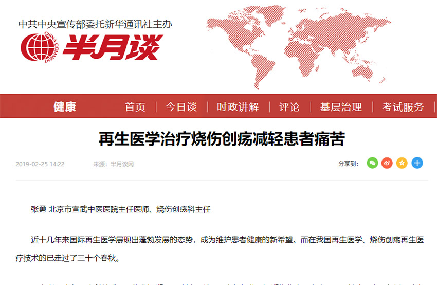 “再生醫(yī)學(xué)日”前夕,《半月談》發(fā)表北京宣武中醫(yī)醫(yī)院張勇文章紀(jì)念燒傷創(chuàng)瘍再生醫(yī)療技術(shù)三十周年......