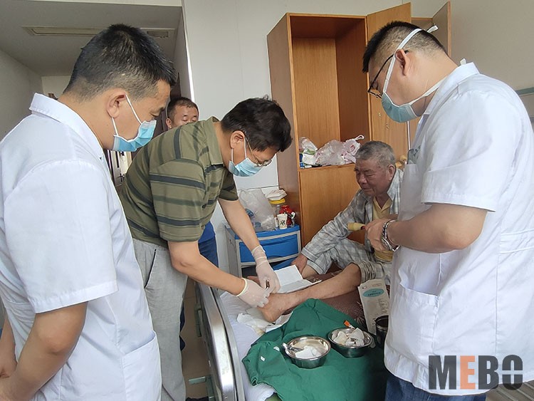 2021年6月29日,中國中西醫(yī)結(jié)合學(xué)會燒傷專業(yè)委員會張強(qiáng)主任繼續(xù)在宿州煤電集團(tuán)總醫(yī)院燒傷科對多例糖尿病足、褥瘡、慢性潰瘍病人進(jìn)行會診,對患者創(chuàng)面進(jìn)行清創(chuàng)并指導(dǎo)臨床醫(yī)師換藥,對后期的治療提出了寶貴意見,得到醫(yī)護(hù)人員和患者的贊賞。