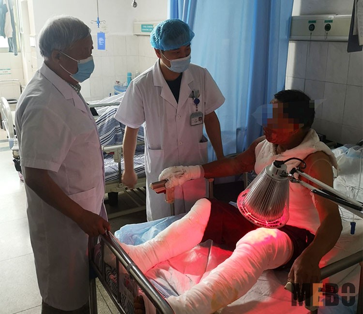 2021年6月29日,鄭州大學(xué)附屬洛陽中心醫(yī)院李志剛主任至洛陽市中醫(yī)藥學(xué)校附屬醫(yī)院和嵩縣黃金醫(yī)院對一例合并糖尿病的大面積液化氣爆燃傷和一例外傷皮膚組織壞死病人進(jìn)行會診,對目前創(chuàng)面應(yīng)用MEBT/MEBO的治療效果表示肯定,讓患者既享受基層醫(yī)院的收費(fèi)標(biāo)準(zhǔn),又有三甲醫(yī)院的治療效果和專家團(tuán)隊(duì)支持,燒傷創(chuàng)面聯(lián)盟建設(shè)模式真正讓老百姓得到了實(shí)惠。