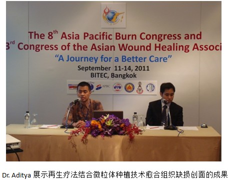 來(lái)自馬來(lái)西亞的Dr. Margaret和Dr. Farid以及來(lái)自印尼的Dr. Aditya都是在各臨床上應(yīng)用美寶再生醫(yī)學(xué)一年以上,積累了一定的再生技術(shù)技能及經(jīng)驗(yàn)的骨干醫(yī)生,Dr. Aditya還曾經(jīng)在09年赴四川多家基地醫(yī)院進(jìn)修,并在之后的再生醫(yī)學(xué)推廣應(yīng)用上起到了相當(dāng)?shù)耐苿?dòng)作用。這三名專家從燒傷、斷指及微粒體種植技術(shù)等多角度展示出了美寶再生醫(yī)療技術(shù)、產(chǎn)品應(yīng)用的優(yōu)越性及廣泛性,使美寶再生醫(yī)學(xué)更加客觀、更加具有說(shuō)服力地傳播給與會(huì)聽(tīng)眾。