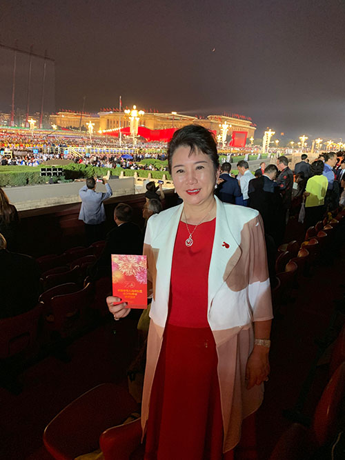2019年10月1日,美寶集團董事局李俐在天安門廣場親歷了一場必將載入史冊的國家盛典,激動之情尚在心頭縈繞、久久不能平復之際,又于晚上8點出席了在天安門廣場舉行的繽紛璀璨的慶祝中華人民共和國成立70周年聯(lián)歡活動。習近平等黨和國家領導人同各界群眾歡度國慶之夜,共賞這一空前盛大的慶典。