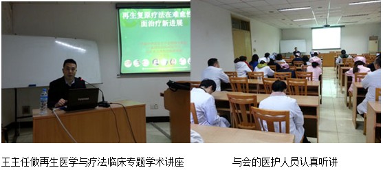 2012年11月27日,中國中西醫(yī)結(jié)合學(xué)會燒傷專業(yè)委員會常務(wù)兼秘書、《中國燒傷創(chuàng)瘍雜志》副總編輯、北京美寶燒傷創(chuàng)瘍研究所副所長、第二臨床研究部主任王洪生研究員應(yīng)重慶市江陵醫(yī)院的邀請來到該院,為全院醫(yī)護(hù)人員做了一場精彩的學(xué)術(shù)講座。聽取此次學(xué)術(shù)講座的有該院泌尿外科、肛腸外科、骨科、腦外科、胸外科、婦產(chǎn)科、皮膚科、口腔科、五官科、精神科等科室近60余人參加。下午3點培訓(xùn)會準(zhǔn)時開始,王主任以“再生復(fù)原療法在難愈性創(chuàng)面治療新進(jìn)展”為題做了精彩的學(xué)術(shù)報告,全面講解了再生醫(yī)學(xué)的相關(guān)概念,并結(jié)合大量的病例圖片講解了再生醫(yī)療技術(shù)骨外露、鋼板外露、糖尿病足、褥瘡等各種難愈合創(chuàng)面的治療過程及要點,講解了再生醫(yī)療技術(shù)在各個臨床科室的應(yīng)用。此場報告深深的震撼了在場的每一位醫(yī)護(hù)人員,會議結(jié)束后,大家還不愿離去,爭先恐后的提問,王洪生研究員都一一解答。