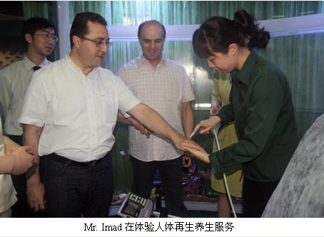 5月31日上午,Mr. Issam和Mr. Imad準時來到美寶集團總部,受到國際部總裁孫霞女士、國際部市場總監(jiān)劉鋼先生及其它市場人員的熱情接待。隨后,雙方正式展開深入會談。會談在嚴謹高效的氛圍中順利進行,雙方就現(xiàn)有燒傷創(chuàng)瘍市場、新產(chǎn)品、新市場及醫(yī)療開發(fā)項目未來三年的深入合作進行了磋商,達成了多項戰(zhàn)略共識,并就達成的共識簽署了諒解備忘錄。會議中,孫總介紹了近三年來美寶國際市場的快速發(fā)展,總結(jié)了三年來雙方合作的良好情況,針對敘利亞市場的發(fā)展給予寶貴的建議并就未來三年雙方的合作提出了戰(zhàn)略規(guī)劃。Mr. Issam對雙方的友好合作及美寶集團對敘利亞市場的大力支持表示誠摯感謝,并表示目前Unipharma正在大幅度提高對美寶技術(shù)產(chǎn)品的市場推廣及拓展力度,誓將美寶產(chǎn)品快速打造成為該企業(yè)上千種產(chǎn)品中的TOP 3之一。會后,來訪客人參觀了人體再生復原俱樂部,對俱樂部的服務(wù)和經(jīng)營規(guī)劃稱贊不已。