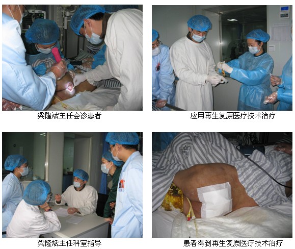 通過這次學(xué)術(shù)交流取得了很好的反響,會后很多參會者主動向梁主任咨詢再生復(fù)原醫(yī)療技術(shù)相關(guān)事宜,梁主任都詳細(xì)地一一做答。其中成都市老年病醫(yī)院ICU病房有一例特大褥瘡病例,會后也向梁主任進行咨詢具體的治療方法,并且急切邀請梁主任到該院會診。4月19日,梁主任在四川省中西醫(yī)結(jié)合學(xué)會燒傷專委會朱春紅同志的陪同下到該院會診指導(dǎo)。梁主任為科室人員示范了規(guī)范的換藥原則和技巧,強調(diào)再生復(fù)原醫(yī)療技術(shù)規(guī)范治療的要點,并就再生復(fù)原醫(yī)療技術(shù)在臨床的應(yīng)用再次向該科室人員進行了詳細(xì)地講解。