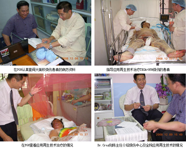 3、12月10日上午,應邀到馬尼拉市東大街醫(yī)院(政府醫(yī)院,600病床)燒傷中心進行技術交流和培訓,培訓后該院馬上采用皮膚再生技術治療住院的燒傷患者。