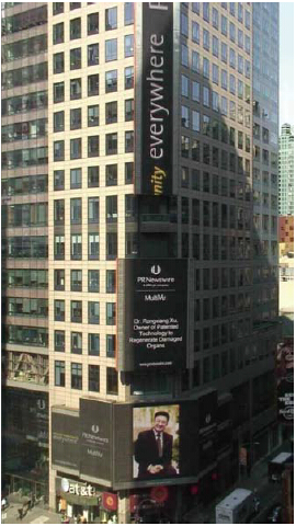 徐:2013年中期,應世界形式之需,我在全球公開了人類再生生命的秘密及人體再生復原科學在器官再生、頑疾復原、生命還童等領域的實際成果。當時,美通社、路透社、中新社等多家世界主流媒體,以各種語言向全球作了發(fā)布,紐約時代廣場七次刊登了相關信息,掀起了器官再生科學在全世界的熱潮,更激起了世界數(shù)十億人民對此成果的期盼,潛能再生細胞等專利被關注更達億次計數(shù)。我認為這代表了人類對新科學的敏銳與向往,我沒有壓力,而是高興,這比我想像的新科學被人類應用快了一個世紀。