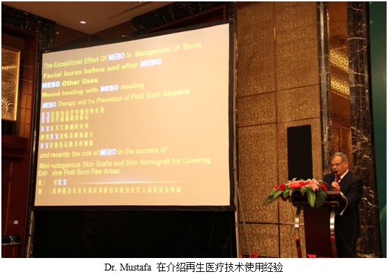 第一位演講的是來自阿聯(lián)酋迪拜的Ali Al-Numairy 醫(yī)生,他是海灣??漆t(yī)院整形外科主任,國際外科醫(yī)師協(xié)會副主席(阿聯(lián)酋地區(qū)主席)20年再生醫(yī)療技術(shù)使用經(jīng)驗是再生醫(yī)療技術(shù)的忠實粉絲。 他演講的題目是再生醫(yī)療技術(shù)在創(chuàng)面愈合中的作用。Ali 教授從創(chuàng)面愈合的機理,疤痕形成的原因引出了創(chuàng)面愈合所需的理想條件與環(huán)境,進而指出再生醫(yī)療技術(shù)是唯一個可以滿足創(chuàng)面生理愈合所有條件的技術(shù),同時跟強調(diào)這項技術(shù)正符合了21世紀燒傷治療的最新理念既:燒傷的治療不僅僅局限于挽救患者生命,更重要的是如何更有效的降低燒傷并發(fā)癥帶來的心理負擔。接著他又詳細全面的介紹了再生醫(yī)療技術(shù)作用機理,以及常用換藥方法.根據(jù)他20多年的臨床使用經(jīng)驗,再生醫(yī)療技術(shù)適應(yīng)癥包括:各類型、程度及階段的燒傷,紫外線損傷;各種類型創(chuàng)傷以及激光術(shù)后創(chuàng)面等等。隨后Dr. Ali 通過大量的病例圖片生動形象的展示了 再生醫(yī)療技術(shù)在燒傷、創(chuàng)瘍、整形美容等多種創(chuàng)面的應(yīng)用。