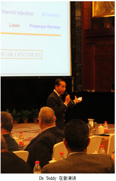 隨后,印尼Cipto Mangunkusumo整形外科醫(yī)生、印尼臨床教育培訓中心主席Teddy O.H. Prasetyono 以瘢痕為主的愈合為題介紹了再生醫(yī)療技術(shù)在整形修復外科的使用經(jīng)驗。他生動形象的演講深深吸引了與會代表,最后總結(jié)道:此項技術(shù)必將成為未來燒傷治療的首選方法。