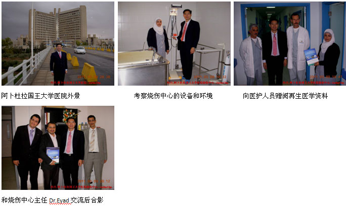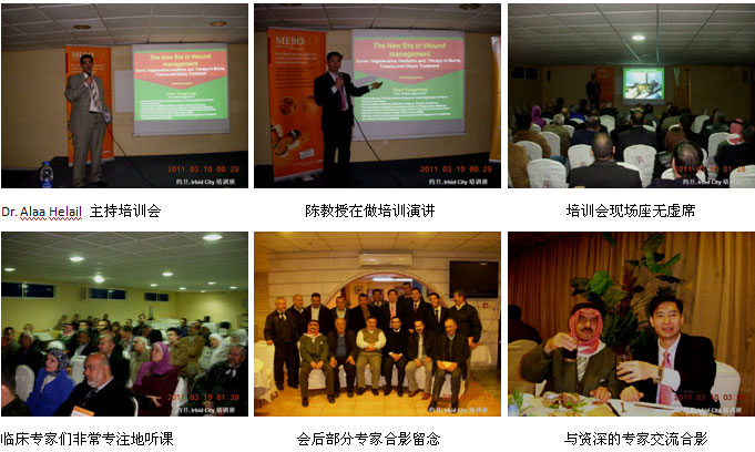 3、 2011年3月10日上午,陳教授一行應邀來到了的Zarka市Zarka Hospital的外科病房進行學術交流及再生醫(yī)學技術培訓。Zarka Hospital是當?shù)刈畲蟮木C合醫(yī)院,該院在臨床上使用MEBO治療小面積燒傷和慢性潰瘍創(chuàng)面已經(jīng)有8年多的經(jīng)驗,但是在大面積燒傷的救治上還沒有突破。主任和醫(yī)護人員對陳教授的到來表示熱情歡迎,詢問了大家在臨床中使用MEBO的情況、存在的問題和進行簡單的討論后,為了使大家能夠更全面、更系統(tǒng)地掌握燒傷再生醫(yī)學技術,陳教授隨后用1小時的時間給該院的10名外科醫(yī)師進行了燒傷再生醫(yī)學技術臨床規(guī)范應用的培訓,培訓使大家更多地了解了再生醫(yī)學技術在大面積燒傷和各種嚴重創(chuàng)瘍創(chuàng)面的治療效果和具體的創(chuàng)面治療方法,增強了大家以后使用再生醫(yī)學技術治療中等面積和大面積燒傷的信心。