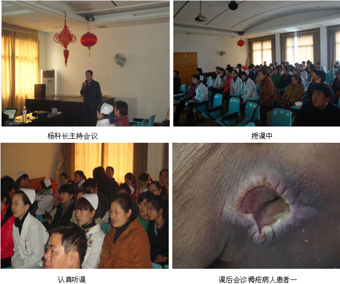 2011年2月23日應(yīng)邵陽市康復(fù)醫(yī)院的邀請中國中西醫(yī)結(jié)合學(xué)會燒傷專業(yè)委員會常委、中國燒傷創(chuàng)瘍科技中心臨床醫(yī)療部金黨軍主任,湖南省辦事處主任汪波,工作人員陳曉友一行在邵陽市康復(fù)醫(yī)院,參加為期一天的皮膚原位再生復(fù)原醫(yī)療技術(shù)在創(chuàng)面處理中的應(yīng)用系列學(xué)術(shù)講座,并對邵陽市人民醫(yī)院燒傷科病人進行會診。