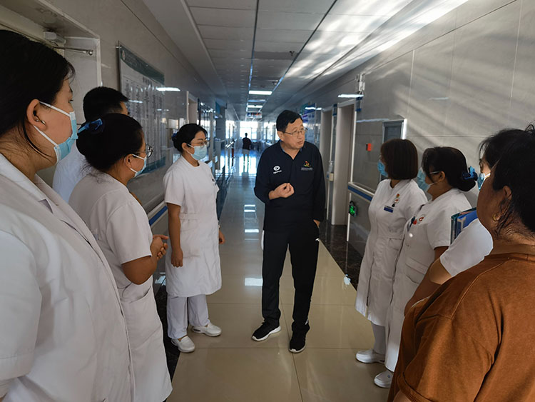 9月23日,《中國燒傷創(chuàng)瘍雜志》常務(wù)編委、燒傷創(chuàng)瘍再生醫(yī)療技術(shù)臨床專家趙瑞慶來到云岡區(qū)再生醫(yī)療基地醫(yī)院外科病區(qū),進行一期創(chuàng)面修復(fù)教學(xué)查房,針對21例慢創(chuàng)住院患者檢視指導(dǎo)。在討論環(huán)節(jié)重點對9例患者(糖尿病足4例,壓瘡2例,燒傷1例,截肢殘端創(chuàng)面1例,足背皮膚壞死創(chuàng)面l例)制定了具體詳細的治療措施,最后趙教授強調(diào)指出,在今后的醫(yī)療工作中要發(fā)揮好基地醫(yī)院的引領(lǐng)輔射作用,為當(dāng)?shù)鼐用窀玫胤?wù)。
