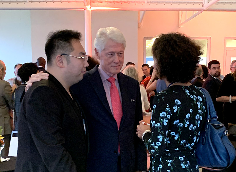 在貴賓招待會(huì)上徐鵬主席與克林頓總統(tǒng)就克林頓基金會(huì)的全球倡議項(xiàng)目及美寶倡議的最新狀況進(jìn)行了深度交流,對(duì)于中國(guó)境內(nèi)年初爆發(fā)的新冠病毒疫情也交流了意見。徐鵬表示美寶集團(tuán)針對(duì)新冠疫情進(jìn)行了總體部署,除了捐款捐物外,也從國(guó)際平臺(tái)宣傳像NBA賽場(chǎng)、全明星賽場(chǎng)和時(shí)代廣場(chǎng)廣告牌等方面聲援武漢和中國(guó)的抗疫工作;從海外籌集防疫物資緊急馳援疫情重災(zāi)區(qū);以及建立官方支持的對(duì)接平臺(tái)加州抗病毒聯(lián)盟(California Fight Against Coronavirus,CFAC)??肆诸D總統(tǒng)表示新冠病毒疫情不是中國(guó)一個(gè)國(guó)家的事情,也不是一個(gè)短期的事件,這會(huì)是一個(gè)全球性事件,中國(guó)之后會(huì)在其他國(guó)家傳播,我們需要一個(gè)長(zhǎng)期的應(yīng)對(duì)策略,比如一個(gè)五年的計(jì)劃,比如在新加坡這樣國(guó)際性的地方建立一個(gè)全球防疫物資調(diào)撥中心,可以隨時(shí)統(tǒng)籌全球防疫物資,及時(shí)援助發(fā)生疫情的地區(qū)。徐鵬主席提出芝加哥大學(xué)徐鵬智庫(kù)開始了一個(gè)對(duì)應(yīng)疫情的大數(shù)據(jù)項(xiàng)目”測(cè)量世界(Measuring The World)”, 通過大數(shù)據(jù)計(jì)算產(chǎn)生新冠病毒COVID-19 全球各地爆發(fā)的風(fēng)險(xiǎn)預(yù)測(cè)分布圖,幫助各地提前防備。
