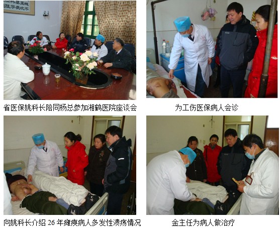 09年12月16日在湖南省勞動(dòng)與社會(huì)保障廳、湖南省工傷醫(yī)保局姚科長(zhǎng)陪同下,美寶國(guó)際集團(tuán)總裁楊智斌,中國(guó)燒傷科技中心臨床醫(yī)療部主任金黨軍同湖南地方美寶總裁汪波,區(qū)域經(jīng)理侯效東一行對(duì)博愛(ài)工傷康復(fù)醫(yī)院,湘鶴職工醫(yī)院進(jìn)行走訪(fǎng)。重點(diǎn)是對(duì)老工傷患者中出現(xiàn)的燒傷愈后防疤和功能康復(fù),褥瘡、潰瘍等難以愈合的創(chuàng)面應(yīng)用美寶系列產(chǎn)品使用再生醫(yī)療技術(shù)進(jìn)行治療。達(dá)到解除患者痛苦,提高患者生活質(zhì)量,降低醫(yī)療費(fèi)用的目的。隨著安全生產(chǎn)要求的不斷提高,燒傷作為工傷傷害的發(fā)病率在不斷降低,我們根據(jù)湖南的具體情況,在工傷康復(fù)領(lǐng)域加大開(kāi)發(fā)力度。這方面的患者主要包括燒傷疤痕創(chuàng)面、創(chuàng)瘍、褥瘡、經(jīng)久不愈合創(chuàng)面。中國(guó)燒傷創(chuàng)瘍科技中心臨床部金黨軍主任親臨醫(yī)療第一線(xiàn)指導(dǎo),為部分患者進(jìn)行創(chuàng)面處理,比較直觀(guān)的給當(dāng)?shù)蒯t(yī)務(wù)人員進(jìn)行臨床指導(dǎo)。詳細(xì)介紹了燒傷皮膚原位再生復(fù)原技術(shù)在多學(xué)科的應(yīng)用,美寶濕潤(rùn)燒傷膏和美寶瘡瘍貼在褥瘡、潰瘍、糖尿病足及各種創(chuàng)傷、久治不愈殘余創(chuàng)面的不同時(shí)期的臨床規(guī)范應(yīng)用。換藥期間醫(yī)務(wù)人員積極提問(wèn),如為什么不能用消毒劑清理創(chuàng)面,油紗條(引流條)的制作。金主任都耐心的一一解答,帶領(lǐng)醫(yī)務(wù)人員結(jié)合臨床給各類(lèi)患者進(jìn)行規(guī)范示范換藥。達(dá)到了再生醫(yī)療技術(shù)臨床培訓(xùn)示范指導(dǎo)相結(jié)合的目的。受到院領(lǐng)導(dǎo)和臨床一線(xiàn)醫(yī)務(wù)人員的好評(píng)。
