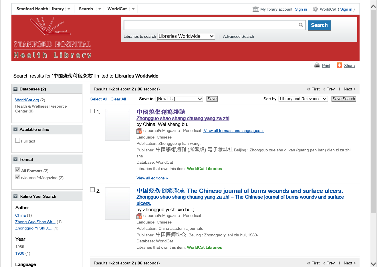 斯坦福大學(xué)(Stanford University)收錄中國燒傷創(chuàng)瘍雜志