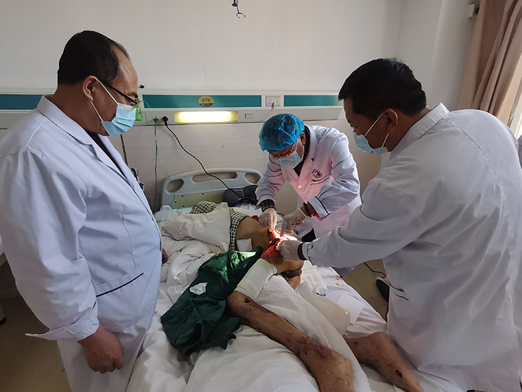 2025年2月20日,應(yīng)張家口市宣化區(qū)人民醫(yī)院急會診邀請,《中國燒傷創(chuàng)瘍雜志》常務(wù)編委、燒傷創(chuàng)瘍再生醫(yī)療技術(shù)臨床專家趙瑞慶,在該院會診了三例患者(1例下肢燒傷、1例糖尿病潰瘍、1例左手拇指干性壞死)。事后在醫(yī)辦室與科主任、主管醫(yī)生討論制定了下一步的治療方案,受到當(dāng)?shù)蒯t(yī)務(wù)人員及家屬的熱情稱贊。