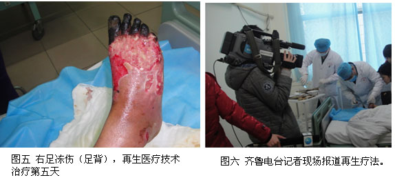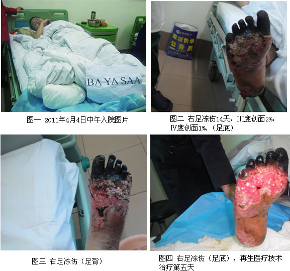 蒙古國20歲小伙子巴亞薩(音譯)是一名大二學(xué)生,2011年3月22日,蒙古下了一場大雪,巴亞薩在戶外做事時(shí)右腳被凍傷。12天后,巴亞薩的腳掌、腳背潰爛,5個(gè)腳趾都變成黑色,當(dāng)?shù)蒯t(yī)生建議截肢,巴亞薩家人表示不能接受。巴亞薩有一位親戚在中國讀博士,2011年4月3日,她通過“王廣順好大夫在線”網(wǎng)站得知106醫(yī)院正在推廣應(yīng)用再生醫(yī)療技術(shù),能治療小伙子的右腳,可以不截肢。4月4日早上,巴亞薩在母親陪同下從烏蘭巴托乘飛機(jī)來到濟(jì)南106醫(yī)院。在各媒體熱心幫助下蒙語翻譯幫巴亞薩辦理了住院手續(xù),當(dāng)天王廣順教授應(yīng)用濕潤燒傷膏及創(chuàng)瘍貼為其換藥治療,患者疼痛明顯減輕。第二天換藥時(shí),肉芽創(chuàng)面由紅轉(zhuǎn)淡,創(chuàng)面液化物增多。第三天換藥時(shí)見創(chuàng)面滲出物減少。第四天已見皮島長出。第五天,Ⅳ度創(chuàng)面壞死組織部分分離,傷口已明顯縮小。通過王廣順教授的精心治療下,現(xiàn)在巴亞薩的傷情已得到了好轉(zhuǎn),右腳小踇趾已恢復(fù)血運(yùn),其他4個(gè)腳趾仍是黑色的。王教授按干細(xì)胞周期為他制定了四周的恢復(fù)方案,如果治療順利,巴亞薩可以不用截肢,一月左右就可回國。(報(bào)道再續(xù))
