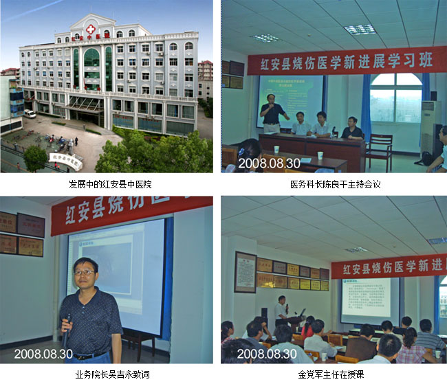 2008年8月30日 有中國中西醫(yī)結合學會燒傷專業(yè)委員會主辦,紅安縣衛(wèi)生局、紅安縣中醫(yī)院承辦“再生醫(yī)療技術新進展學習班”在中醫(yī)院學術廳拉開帷幕。紅安縣地處鄂、豫、皖三省交界。是革命老區(qū),著名的將軍縣,這次學術活動得到縣衛(wèi)生局李汝才局長、醫(yī)政股長袁波、中醫(yī)院院長李長樂、等領導的大力支持。并對燒傷皮膚原位再生醫(yī)療技術在多學科的應用前景,和專家無償?shù)貙鶎俞t(yī)生進行技術指導培訓,給與高度地評價。29—30日雖然連續(xù)兩天持續(xù)強降暴雨但仍有40幾個單位,120多名基層醫(yī)生冒雨前來學習。會議有醫(yī)務科長陳良干主持、業(yè)務院長吳吉永致詞。