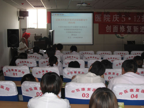 5月18日下午2點(diǎn)30分,中國(guó)中西醫(yī)結(jié)合學(xué)會(huì)燒傷專(zhuān)業(yè)委員會(huì)常委、《中國(guó)燒傷創(chuàng)瘍雜志》常務(wù)編委、中國(guó)燒傷創(chuàng)瘍科技中心醫(yī)療部主任樊兆宗教授在該院進(jìn)行了燒傷創(chuàng)瘍?cè)偕夹g(shù)講座,重點(diǎn)講述了原位再生復(fù)原技術(shù)的臨床操作規(guī)范;原位再生復(fù)原技術(shù)在創(chuàng)傷、褥瘡、潰瘍等多學(xué)科的運(yùn)用;并從燒傷創(chuàng)面治療難題的再生復(fù)原機(jī)理、解決深度創(chuàng)面的愈合難題機(jī)理、創(chuàng)傷創(chuàng)面治療難題的再生復(fù)原機(jī)理、糖尿病潰瘍的再生復(fù)原機(jī)理、組織肢體缺損的復(fù)原機(jī)理;再生療法復(fù)原潰瘍和衰老器官、皮膚器官原位再生復(fù)原機(jī)理和效果;胃腸再生復(fù)原的效果等八個(gè)方面對(duì)人體器官原位再生復(fù)原技術(shù)的機(jī)理進(jìn)行了深入淺出的講解。