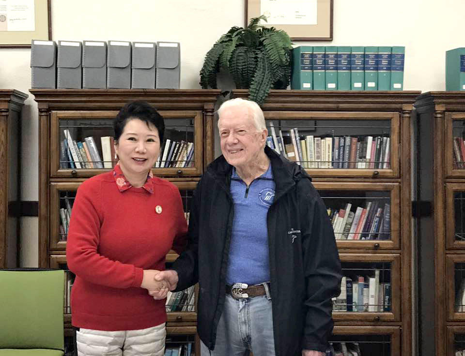 2017年12月8日,美寶國際集團(tuán)副董事長、徐榮祥基金會主席李俐與中美友好交流代表團(tuán)一起訪問了美國前總統(tǒng)卡特的家鄉(xiāng)普萊恩斯鎮(zhèn)。卡特總統(tǒng)特意在博物館親切接見了李俐醫(yī)生,并在徐榮祥教授編著的《人體再生復(fù)原科學(xué)》上簽名,希望她能繼承徐教授的精神,繼續(xù)促進(jìn)中美的教育與公益事業(yè)。