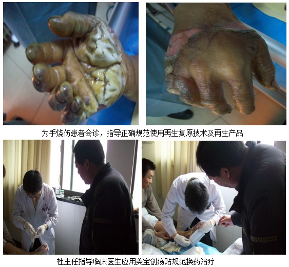 2011年12月中旬,中國(guó)中西醫(yī)結(jié)合學(xué)會(huì)燒傷專業(yè)委員會(huì)、北京美寶燒傷創(chuàng)瘍研究所臨床部臨床技術(shù)專家杜福勤主任和蘇南區(qū)周園園同志走訪了無(wú)錫市武警消防醫(yī)院、羊尖醫(yī)院、東亭醫(yī)院、仁德醫(yī)院(無(wú)錫市老年、兒童福利醫(yī)院)和蘇州吳江市盛澤醫(yī)院、吳江市第三人民醫(yī)院。分別與武警消防醫(yī)院杜紅璋院長(zhǎng)、羊尖醫(yī)院外科主任、東亭醫(yī)院外科華紅偉主任、仁德醫(yī)院外科徐洋主任、蘇州吳江市第三人民醫(yī)院沈虹院長(zhǎng)進(jìn)行了深度交流。