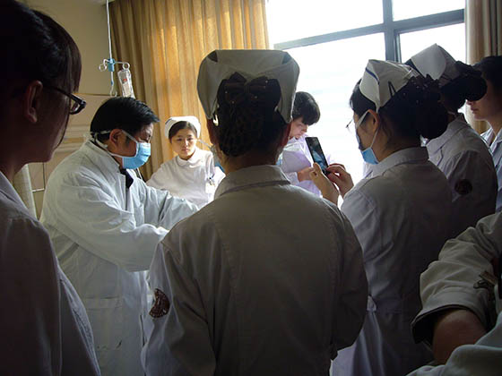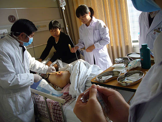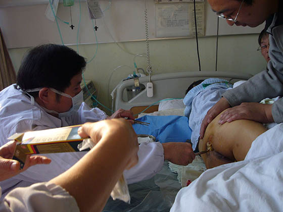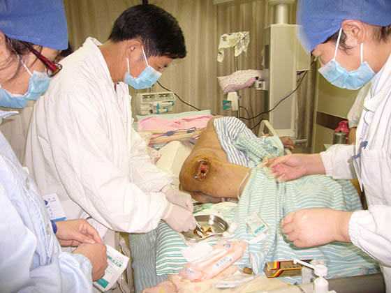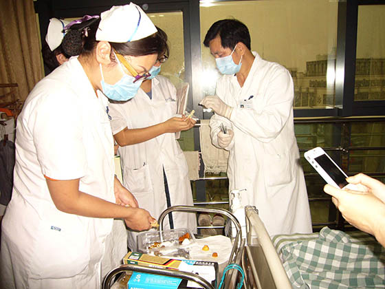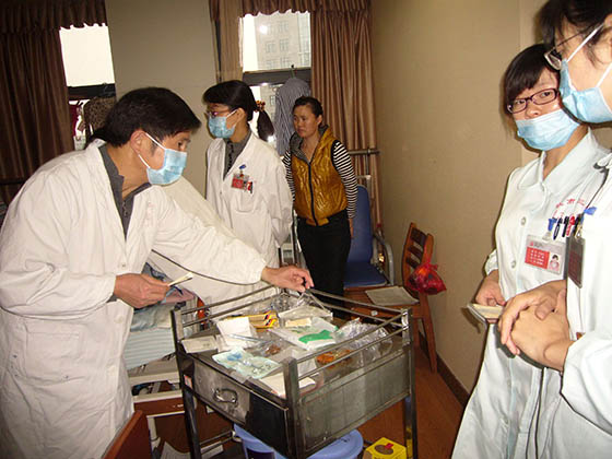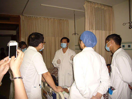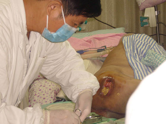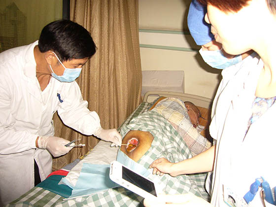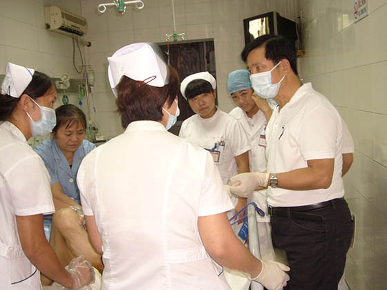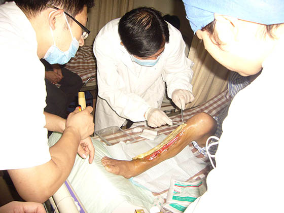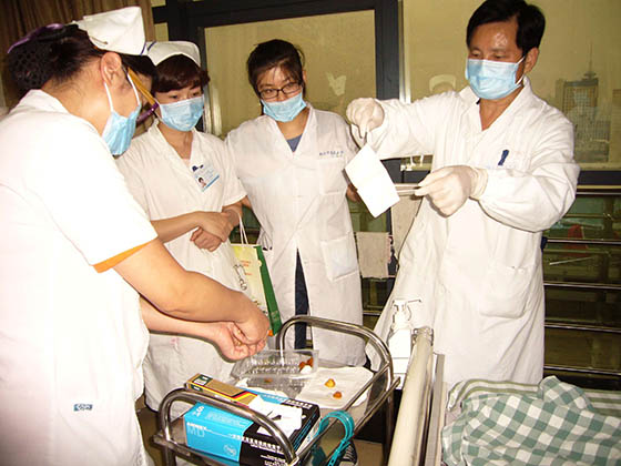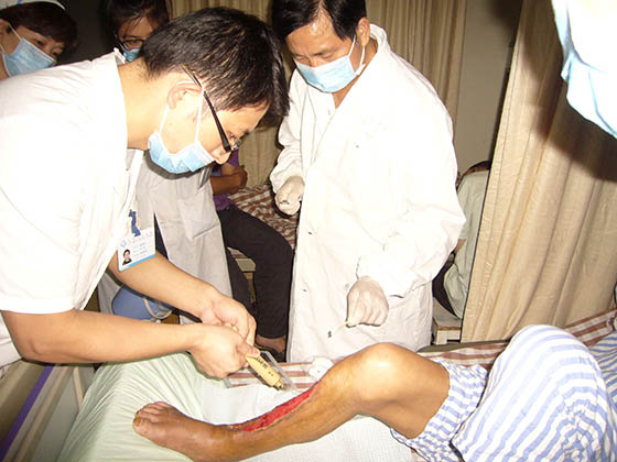每次在各醫(yī)院培訓(xùn)結(jié)束后,胡教授都不辭辛苦的應(yīng)臨床邀請到醫(yī)院各科室進(jìn)行會診,親自指導(dǎo)醫(yī)護(hù)人員為病人進(jìn)行換藥治療。期間還分別前往浙江醫(yī)院等多家醫(yī)院進(jìn)行了院內(nèi)的科室培訓(xùn)講座,并現(xiàn)場指導(dǎo)醫(yī)護(hù)人員為病人換藥治療。