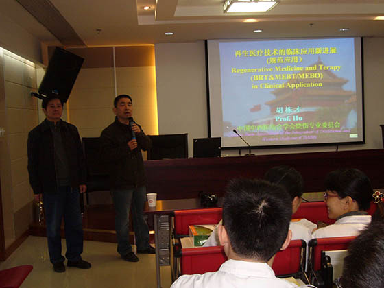 2012年8月及11月6、7日,中國中西醫(yī)結(jié)合學(xué)會燒傷專業(yè)委員會秘書長、北京燒傷創(chuàng)瘍研究所所長、《中國燒傷創(chuàng)瘍雜志》副主編胡棟材教授,應(yīng)邀前往杭州市第一人民醫(yī)院、老年病醫(yī)院(杭州市第一人民醫(yī)院分院)、杭州市第三人民醫(yī)院、浙江省中醫(yī)院、東方醫(yī)院(浙江省中醫(yī)院下沙分院)、杭州市中醫(yī)院、杭州中西醫(yī)結(jié)合醫(yī)院(紅十字會醫(yī)院)、長廣煤山職工醫(yī)院等多家醫(yī)院進(jìn)行再生醫(yī)療技術(shù)創(chuàng)面修復(fù)培訓(xùn)講座。