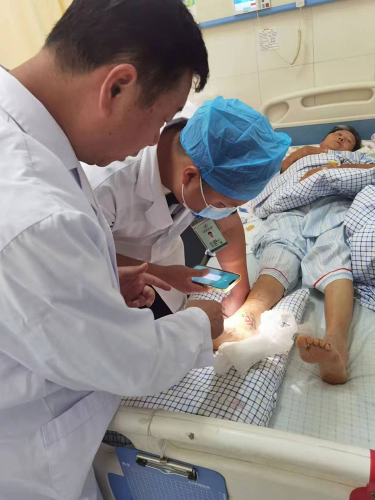 6月19日,應(yīng)河北北方學(xué)院附屬第二醫(yī)院邀請(qǐng),《中國(guó)燒傷創(chuàng)瘍雜志》常務(wù)編委、燒傷創(chuàng)瘍?cè)偕t(yī)療技術(shù)臨床專家趙瑞慶,在該院會(huì)診了四例糖尿病足潰瘍患者,會(huì)診后在醫(yī)辦室做了會(huì)診小結(jié),分別給出指導(dǎo)意見,事后又進(jìn)行了再生技術(shù)治療糖尿病足潰瘍的科室培訓(xùn),耐心解答了大家提出的臨床問題,受到大家一致認(rèn)可。